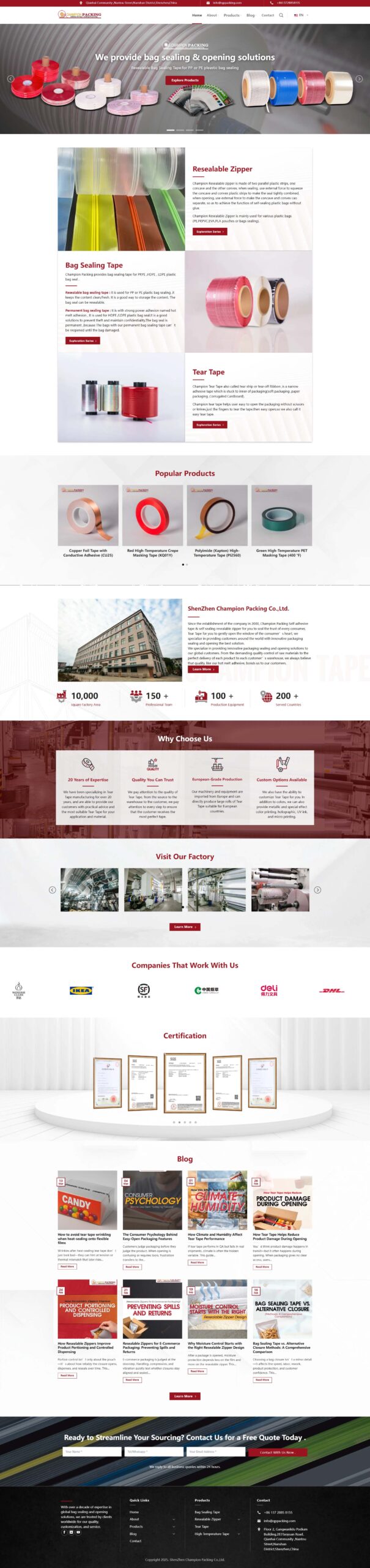 这是一个专注于包装封口解决方案的外贸独立站项目,网站主要面向全球客户,核心产品包括封口胶带、易撕带、可重复封口拉链等包装材料。网站整体目标非常明确:提升品牌专业度、强化产品展示能力,同时通过内容和结构提升海外客户询盘转化率。